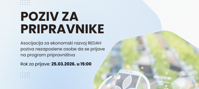 Prilika za prvo radno iskustvo kroz pripravnički angažman u REDAH-u